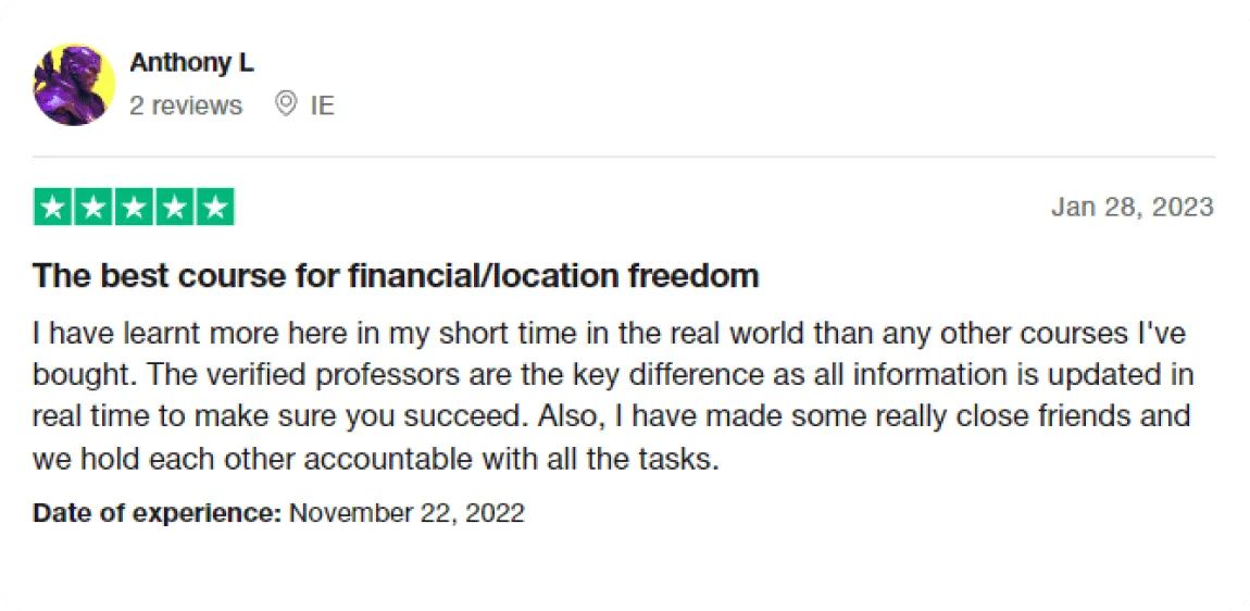 Our modern, practical approach to teaching has led to tens of thousands of our students generating money from anywhere in the world.