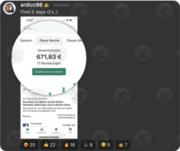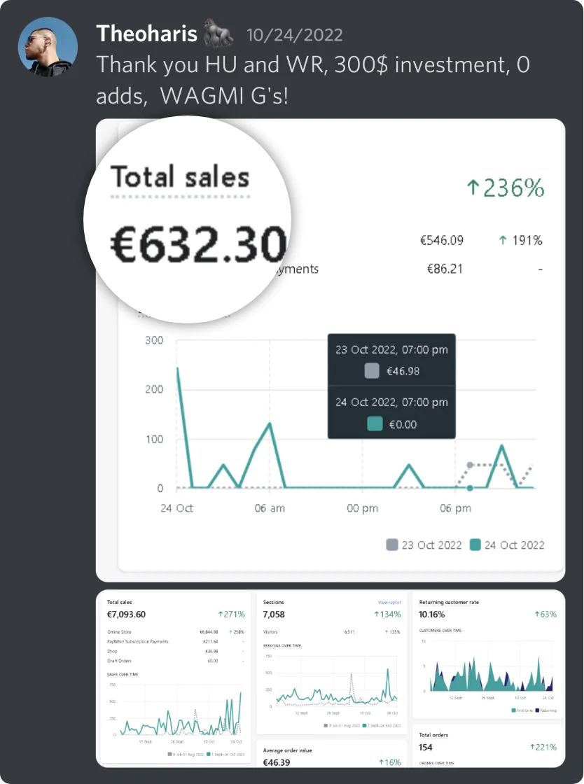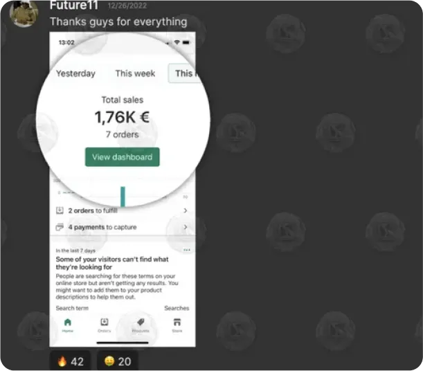 Within 5 weeks he generated €22,000 in revenue (€4,500 profit) through Ecommerce.