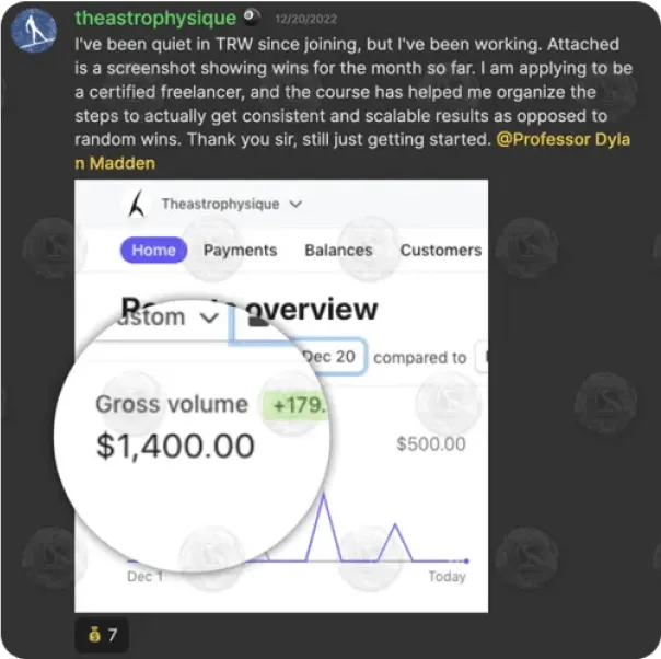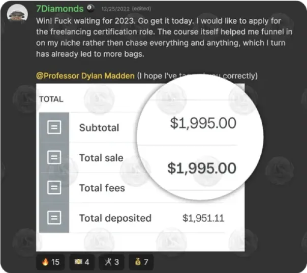 After implementing lessons from the Freelancing Campus, he scaled it to generate $10k-$15k per month.
