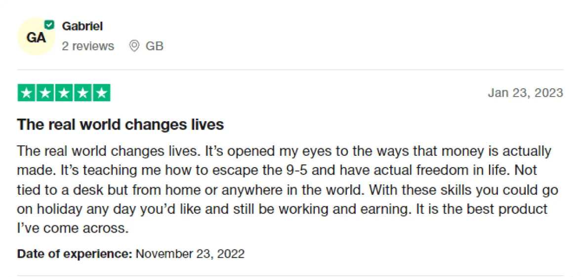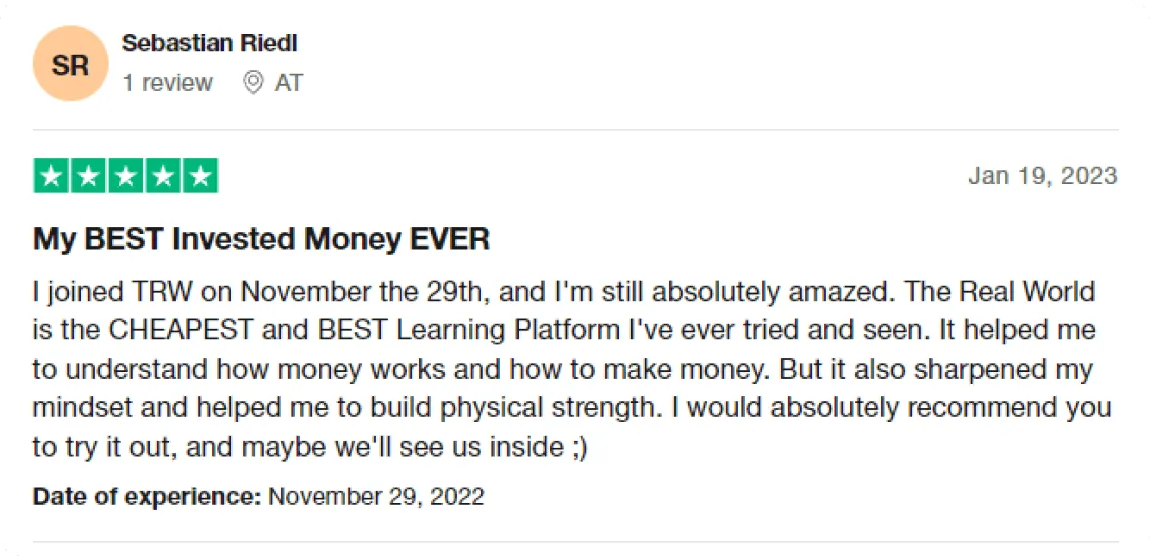 you every step of your journey, from learning to make your first dollar, to scaling to a multi million dollar business, THE REAL WORLD is unmatched.